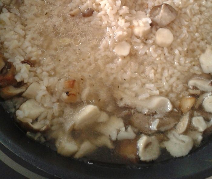 Коричневый рис хорошо промыть, отварить до полуготовности. Воду не сливать.