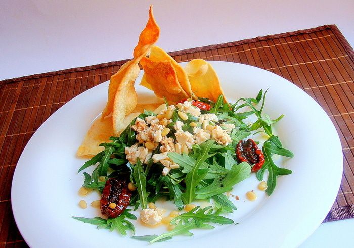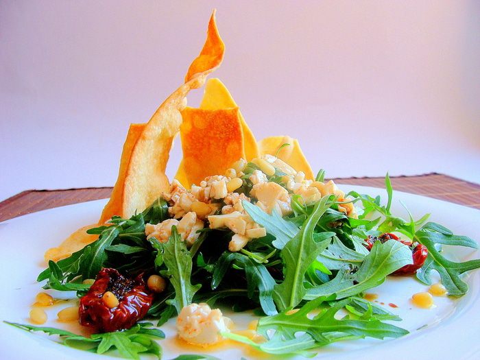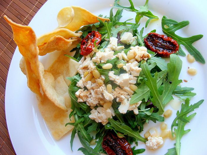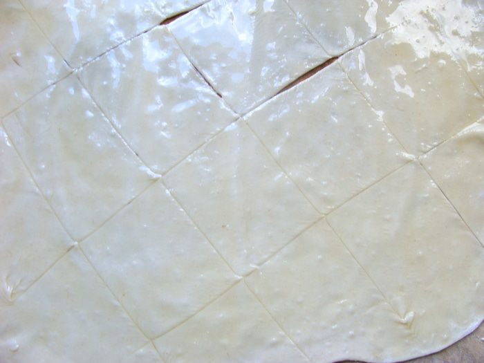 Просеянную муку смешать с водой и 1 с/л оливкового масла. Замесить тесто, закрыть пленкой, оставить на 30 мин. Разделить на 2 части, тонко раскатать, сделать надрезы, чтобы потом было легко разломить, помазать обильно ароматным маслом, посыпать солью.