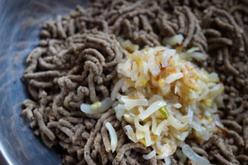 Посолить, поперчить и соединить с луком. Для тех, кто не придерживается поста, можно добавить еще яйцо и картофель сырой тертый.