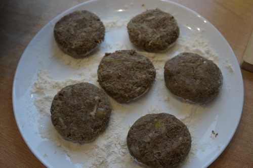 Формируем котлетки, обваливаем в муке.