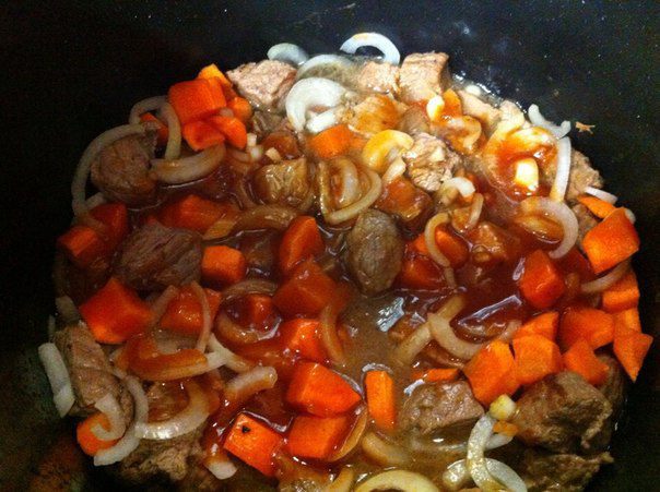 Заливаем все соусом и закрываем. Включаем режим "быстрой готовки" (так он называется у меня) на 35 минут. Мясо готово! Приятного аппетита!