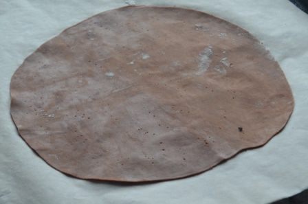Перенести круг на бумагу для выпечки и выпекать 7 минут при 200 гр. При этом надо ОБЯЗАТЕЛЬНО часто наколоть вилкой тесто, чтобы оно не вздыбилось. Складываем стопкой коржи. Обрезки можно собрать и раскатать опять, выпечь корж чуть подольше - минут 10, чтобы он прям подсох и раскрошить для оформления.