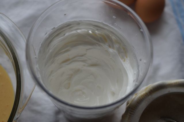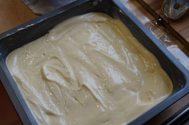Добавляем взбитые белки, форму для выпечки застилаем пергаментом, смазываем маслом стенки.