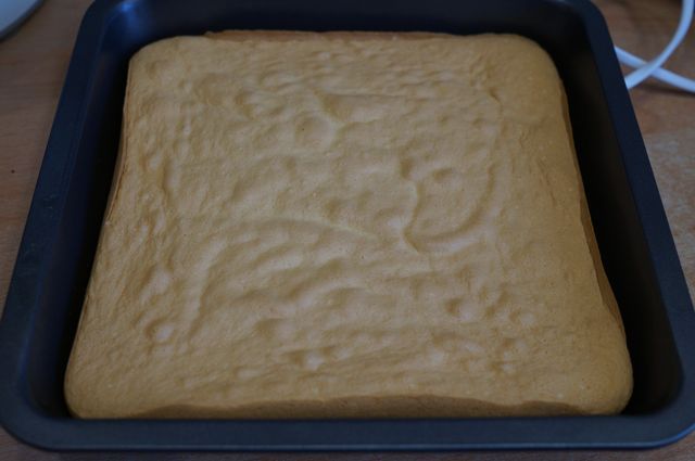 Выпекаем при 175"С около 25 минут, до готовности, бисквит остужаем.