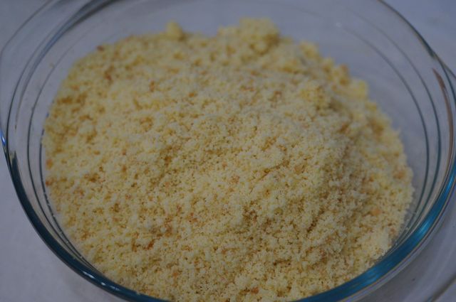 Остывший бисквит разминаем/перемалываем в мелкую крошку, добавляем ванилин.