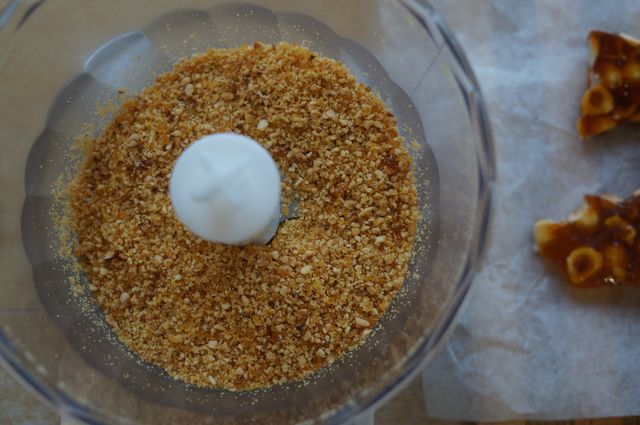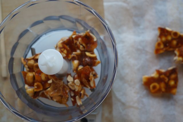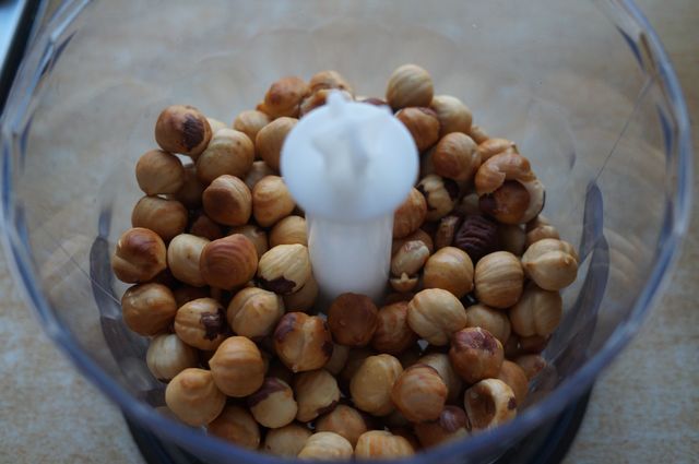 Ореховая паста. Поджаренный фундук (155 г) смолоть в процессоре.