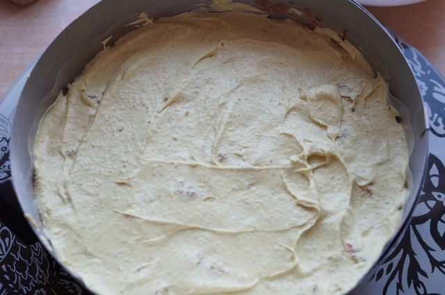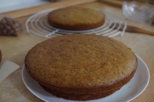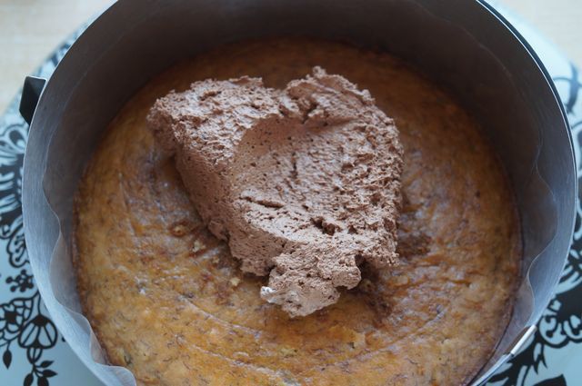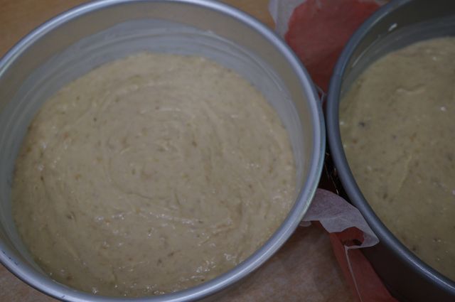 Разделить тесто между 4 формами (2 по 26 см и 2 по 18 см), выпекать при 160-170"С около 30 минут до готовности.