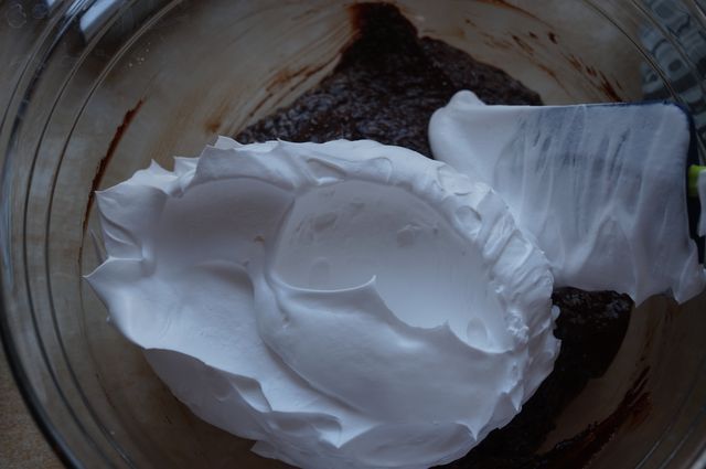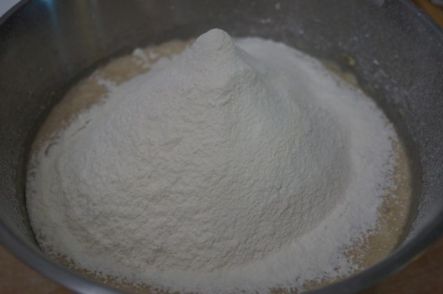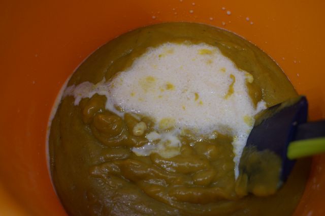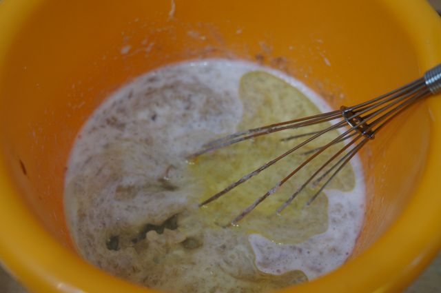 Просеять муку, разрыхлитель, соду, соль, соединить с жидкими ингредиентами.