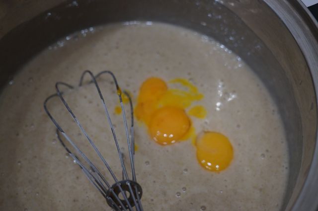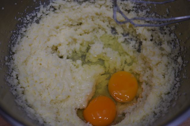 Масло взбить с сахаром до кремового состояния, добавить яйца.