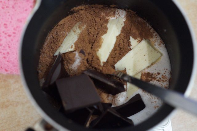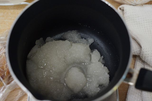 Сахар смочить водой в ковшике, сварить на слабом огне карамель янтарного цвета.