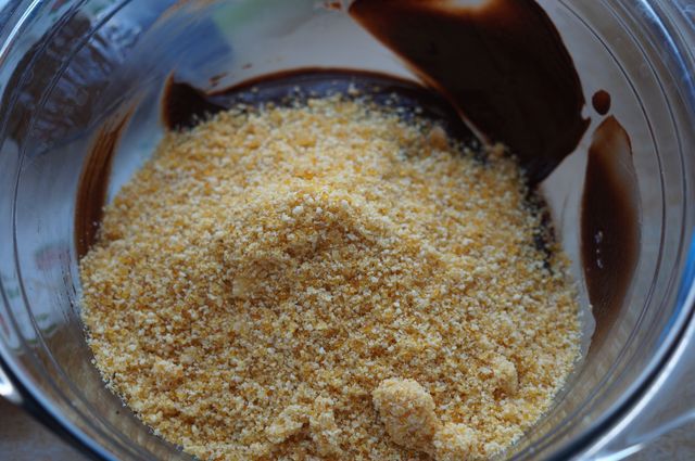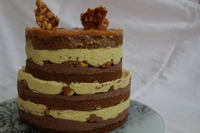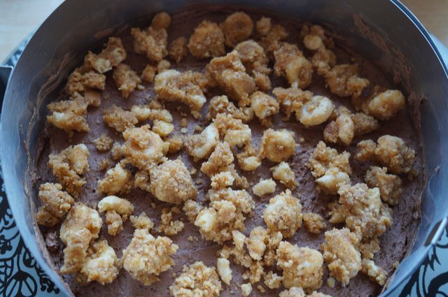 Ореховая глазурь. У меня не было пралиновой пасты, но ее легко сделать. Воспользуйтесь рецептом орехового грильяжа, только измельчите до состояния, пока не начнет выделяться ореховое масло. Растереть пасту с маслом, сахаром и солью.