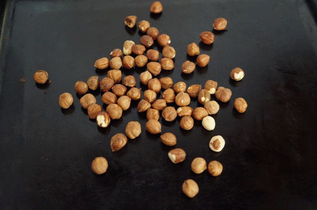 Ореховый грильяж. Фундук подсушить в духовке, очистить от кожуры.