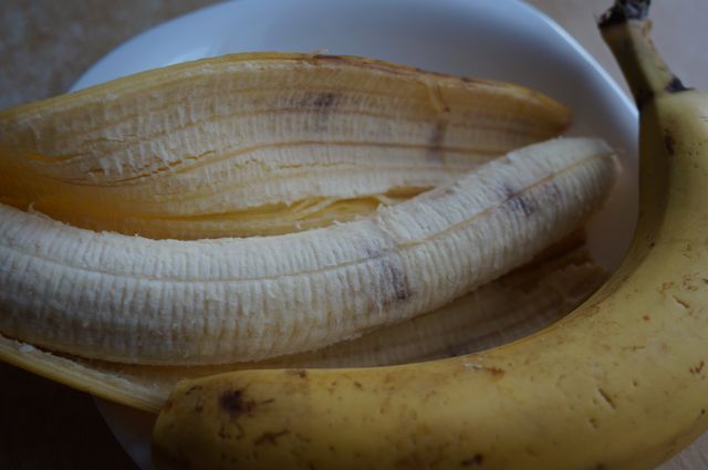 Бананы нужны очень спелые, коричневые и мягкие. Если ваши еще не дошли до кондиции - оставьте при комнатной температуре на 1-2 дня. Вес дан без кожуры и отходов.