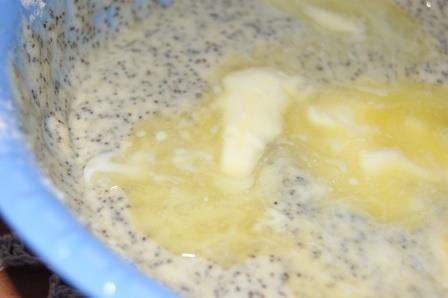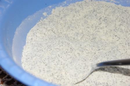 Муку, мак и цедру лимона смещать.