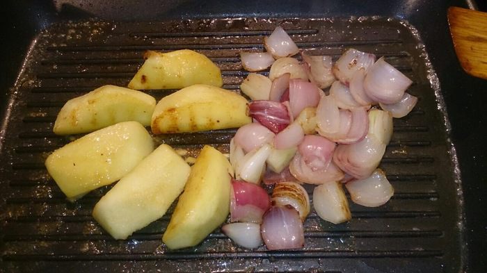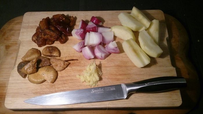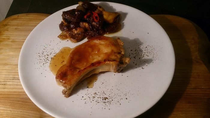 Выкладываем на тарелку чатни, корейку поливаем загустевшим яблочным соком, и обязательно молотый перец. Запахи жареного вяленого инжира и фиников перемешались с запахами корицы и гвоздики, острота чили, кисло-сладкая нотка яблок, пикантность печеного лука и аромат сливочного масла сделали гарнир просто потрясающим! Корейка за счет тушения в яблочном соке получилась очень мягкой, сочной, кисло-сладкой, ароматной. Вот такой получился вкусный рецептик! Всем приятного аппетита!