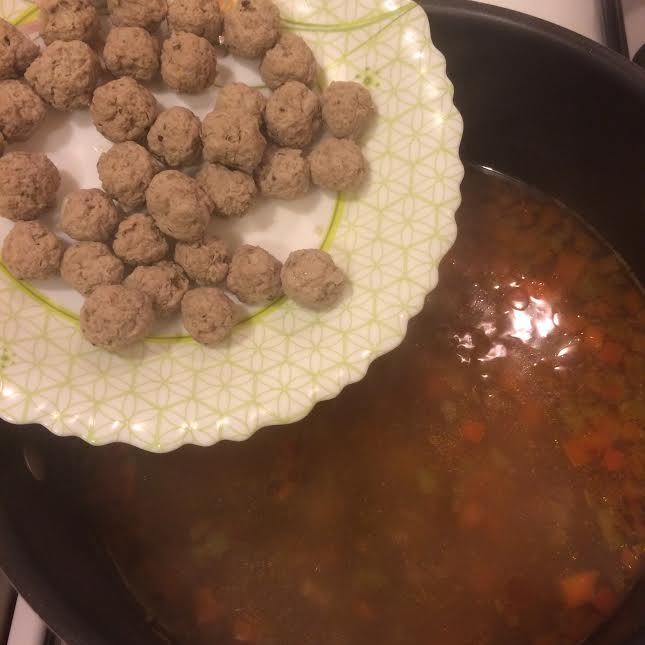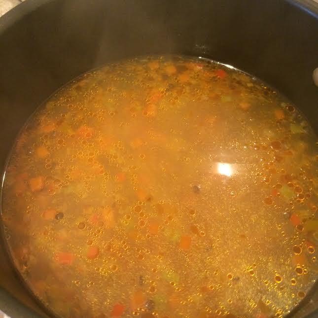 Добавить чечевицу, тефтели, перемешать и варить 2–3 минутки.