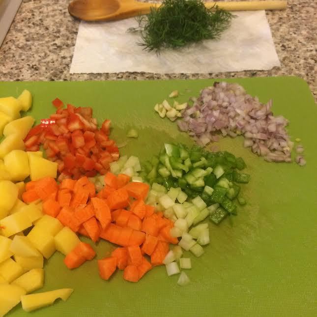 Овощи мелко нарезать.