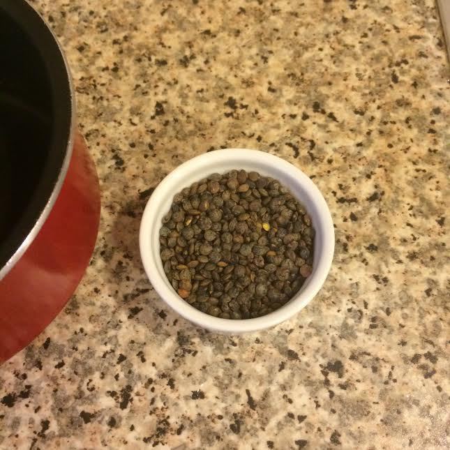 Отварить зеленую чечевицу.