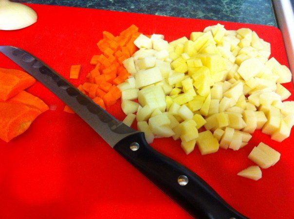 Овощи режем кубиками (либо же другой формой, по желанию).