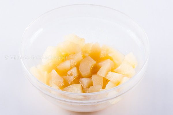 Во-вторых, одну часть груш я ароматизировала грушевым ликёром, что сделало вкус и аромат шарлотки еще лучше, многограннее и ярче. Думаю, Эрме бы не разочаровался J