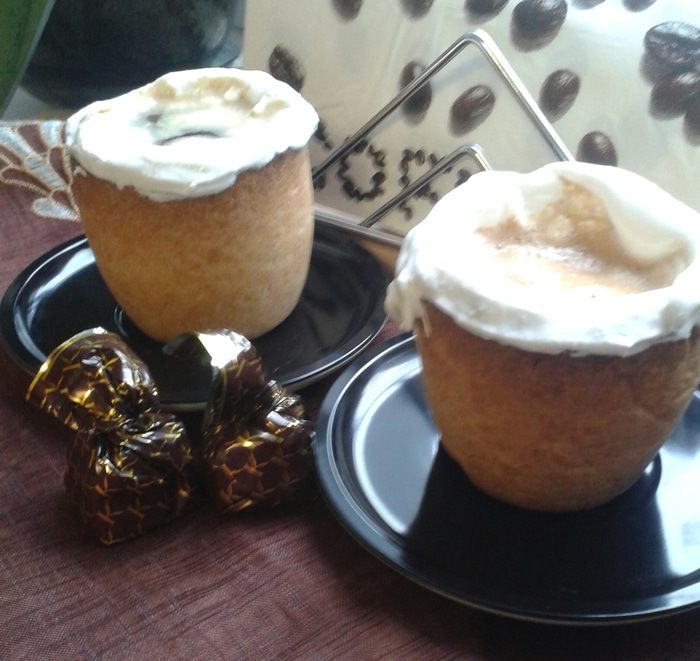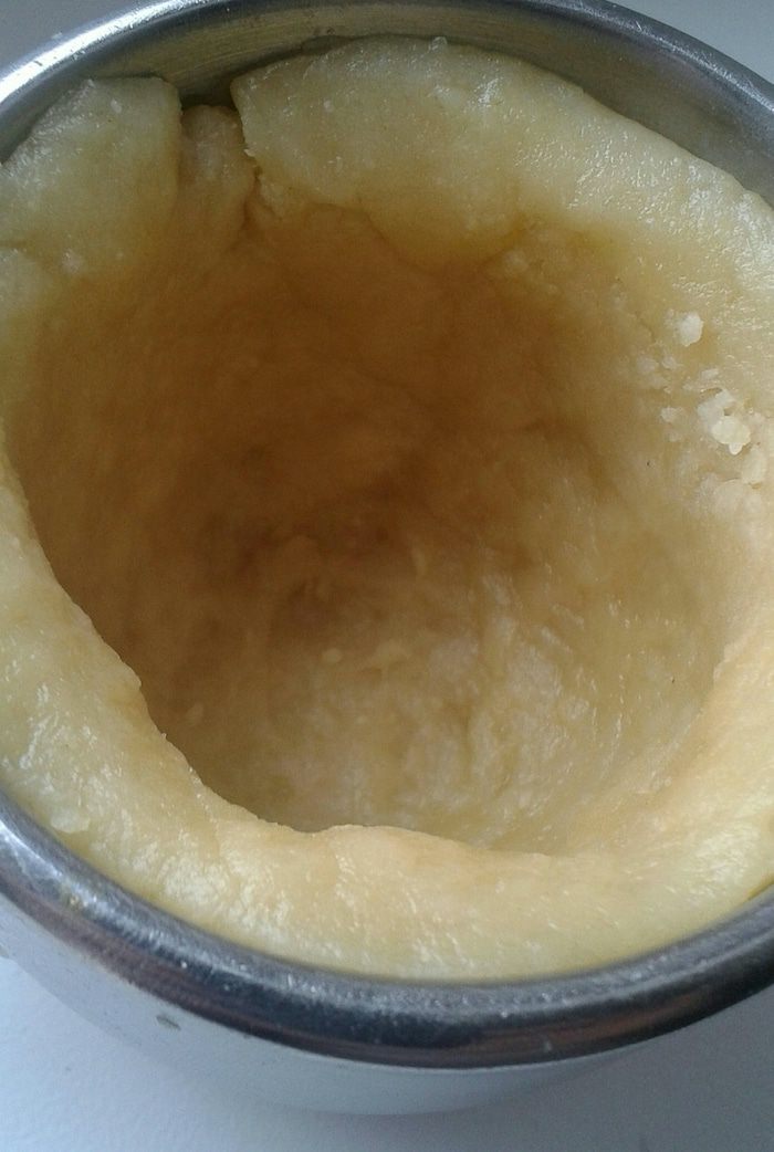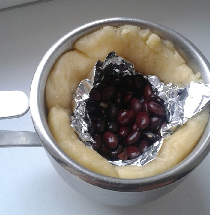 На дно заготовки выложить фольгу, и утяжелитель, например горох или фасоль. Отправить в разогретую до 190 градусов духовку на 20 минут. Когда заготовки испекутся - остудить! Далее пока кружки остывают, сделаем глазурь. Я взяла яичный белок хорошенечко взбила, добавила сахарную пудру. Глазурью покрыть внутреннюю часть кружки. Поставить на холод застывать.