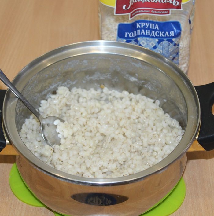 Отварить голландскую крупу ТМ «Националь» согласно инструкции.