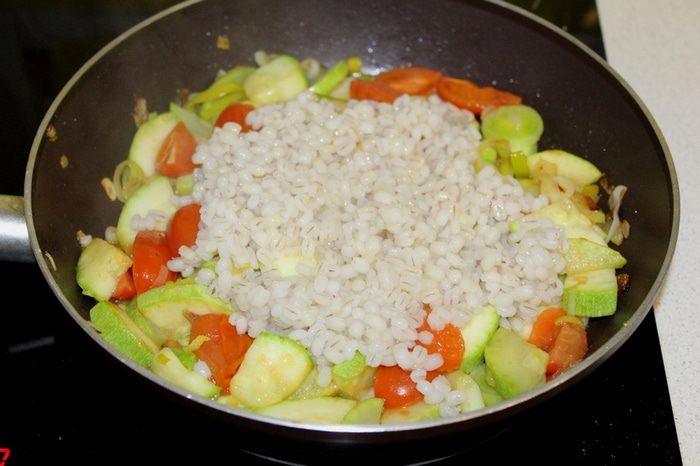 Простой и питательный салат с перловой крупой и молодым кабачком прекрасно разнообразит ваше меню в пост.