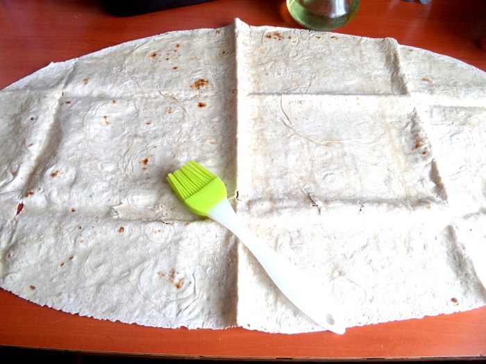 Начинаем скручивать с более короткого края,слегка смазываем маслом.