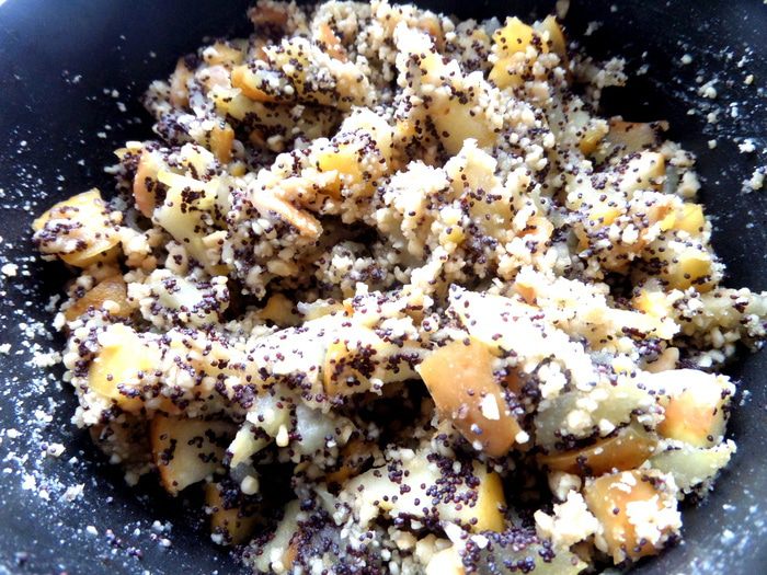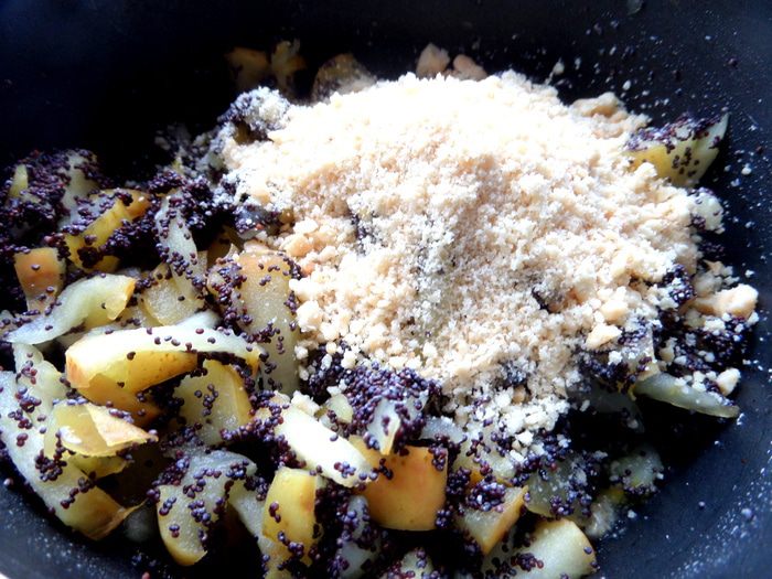 Высыпать процеженный распаренный мак...