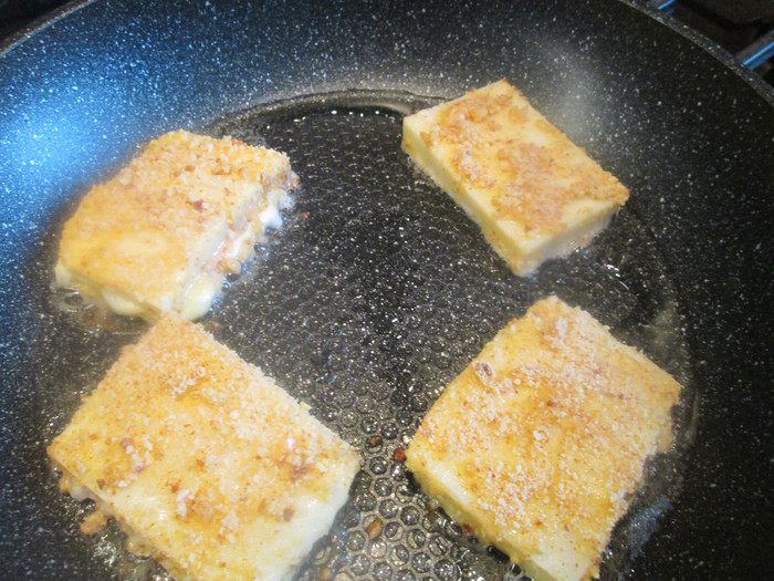 Обжариваем с обеих сторон до золотистой корочки, но так, чтобы панировка не пригорела.