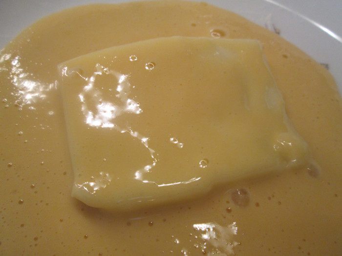 Куски сыра должны быть толщиной около 1 см.