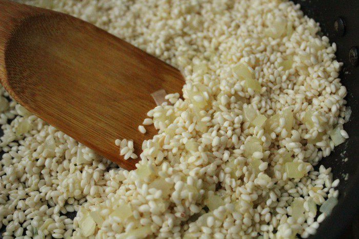 Рис перед приготовлением ризотто нельзя мыть – вместе с водой вымывается крахмал, придающий бархатистость готовому блюду.