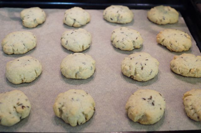 На противень выкладываем небольшие шарики теста, прижимаем ладонью или ложкой.