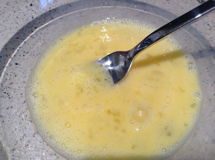 Яйца взбить вилкой (1 ст л яичной смеси отложить для обмазки), добавить ваниль и сахар, 1 ст. л. воды.