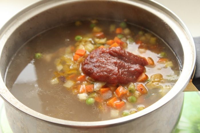 Добавить две ст.л томатной пасты (у меня острый грузинский соус).