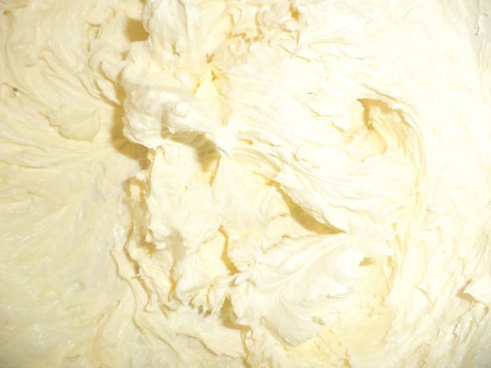 Для крема растереть размягчённое сливочное масло с сахарной пудрой.