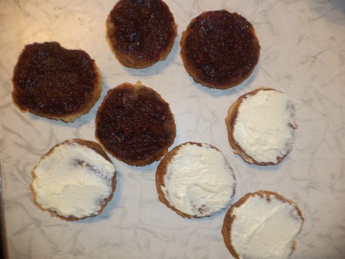 Половину остывших печенек намазать повидлом. А вторую половину печенек - масляным кремом.