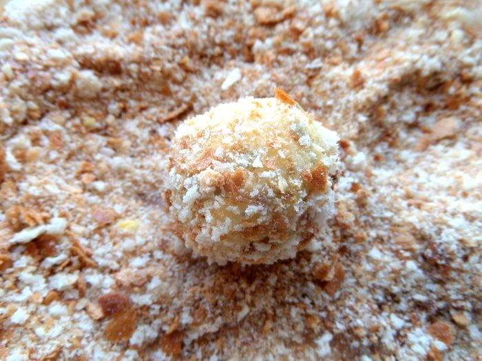 Перемещаем из яиц шарик в крошку.