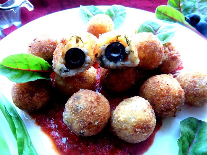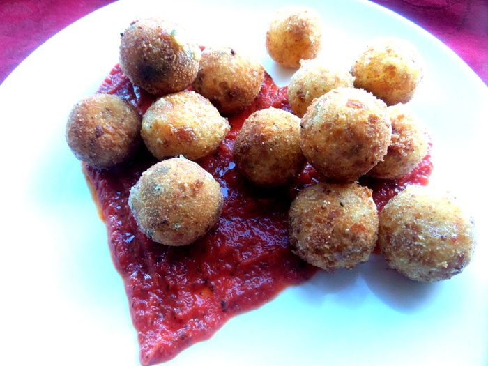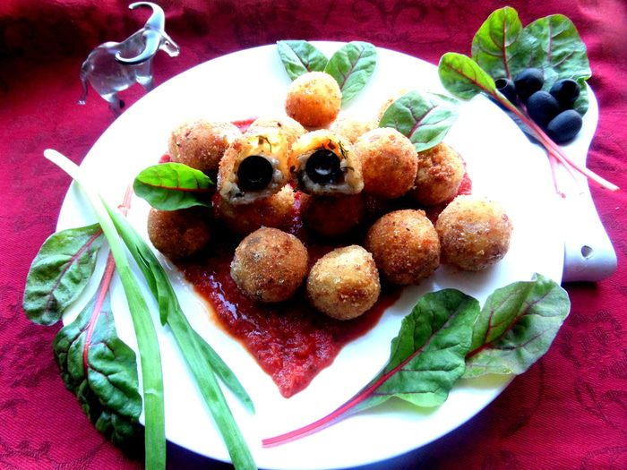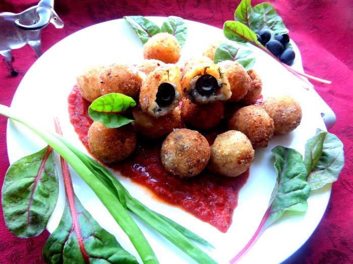 Хочу подлагодарить всех за поздравления, а сайт-за призы))) И угостить очень вкусными закусочными шариками,которые я подала на пламенном томатном сердце!!! Рецепт от Джейми Оливера...