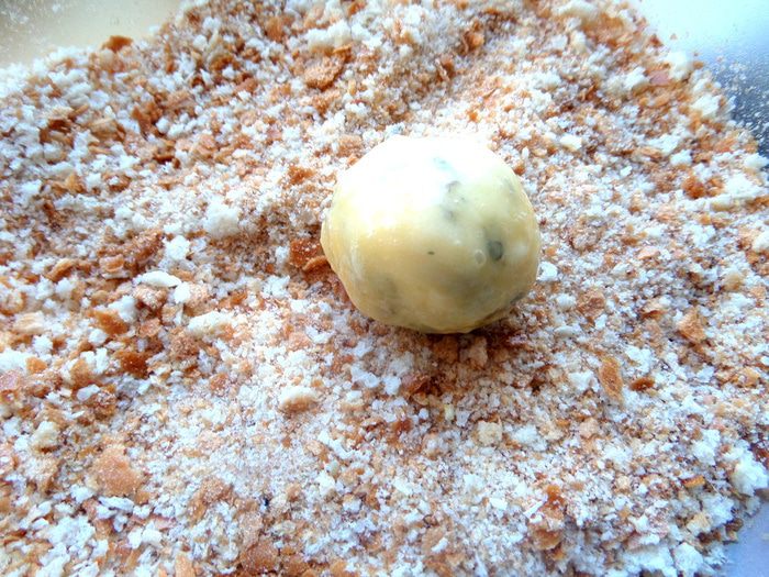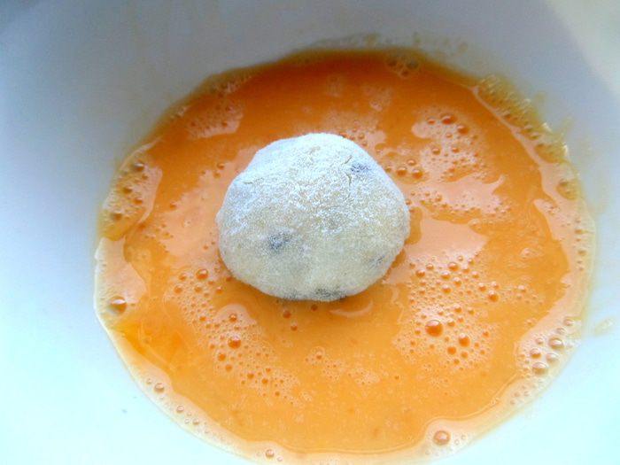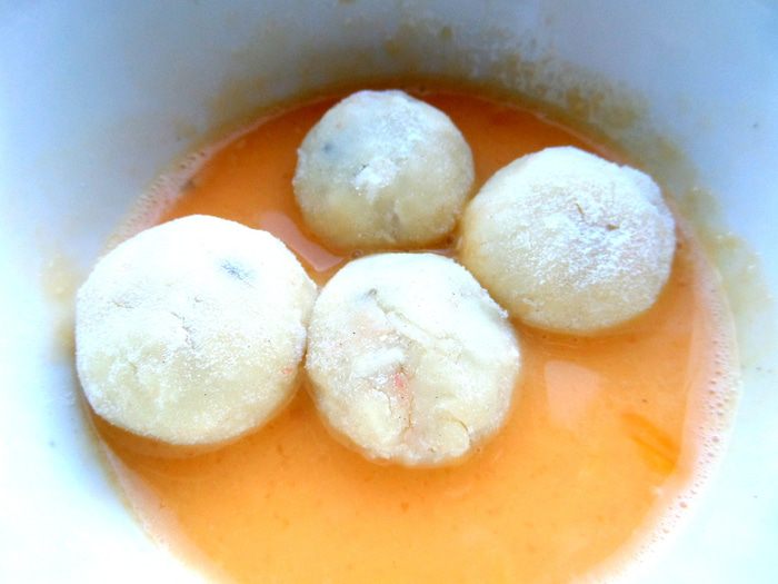 Покатать со всех сторон в яйцах каждый шарик.