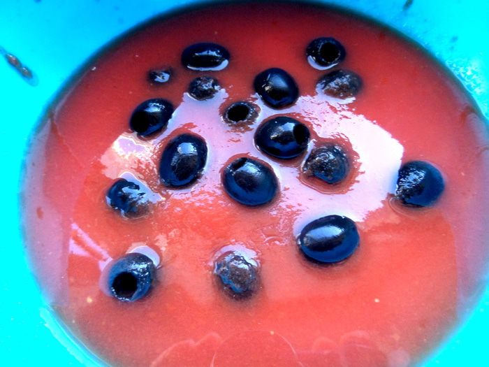 Оливки бросим мариноваться в процеженном томате...