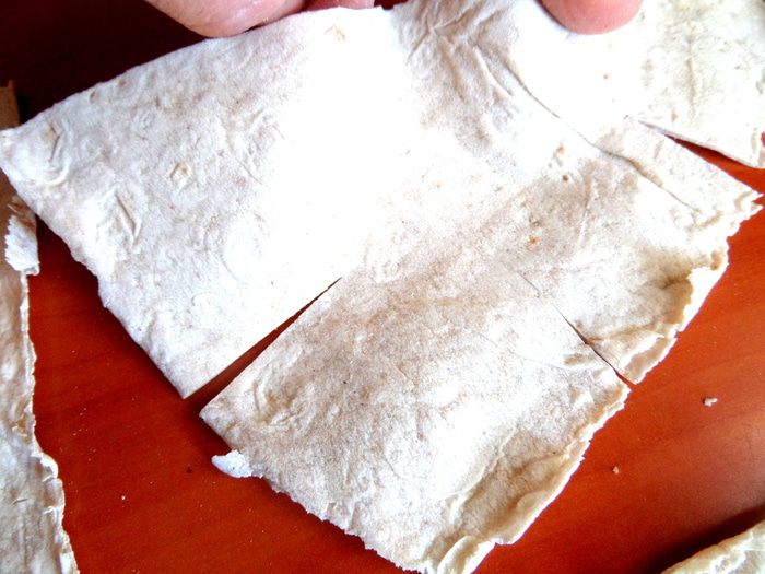 Начинаем кроить из лаваша...У меня овальный,размером 38 см на 68 см.
