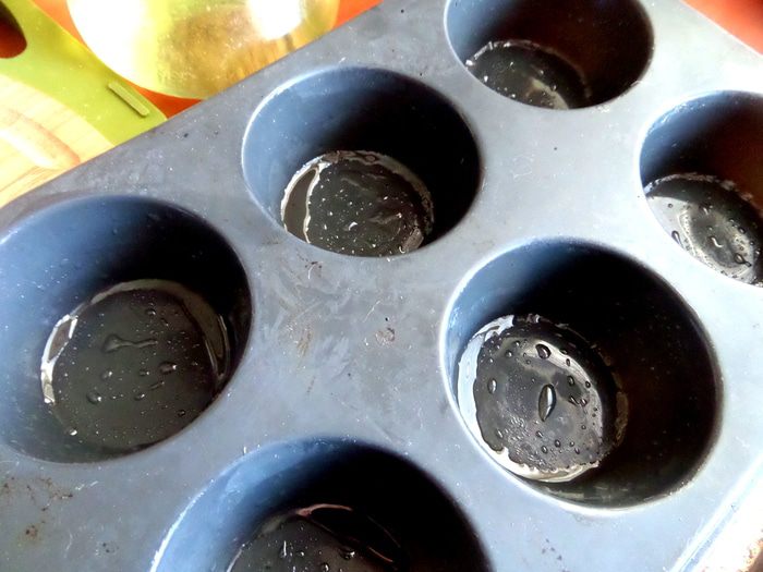 Для будущих корзиночек взяла силиконовую форму для кексов, смазала обильно маслом.