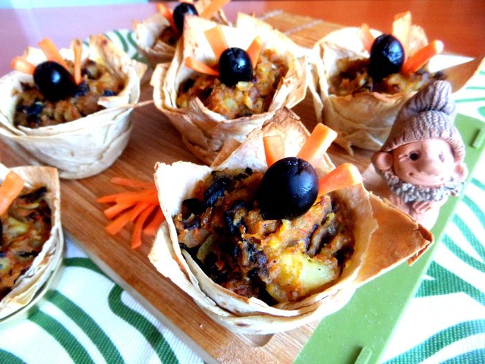 Грибы с картошкой в корзиночках из лаваша (постные)