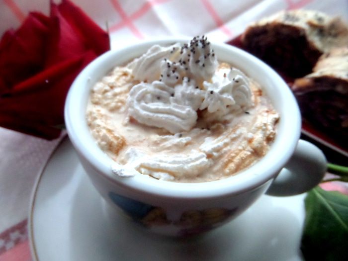 С корицей я пью кофе каждый день...Но вот решила повторить просмотренный в интернете видео-рецепт карамельного кофе))) Немного специй...,а для праздничности украсила снежной вершиной из сливок...Получилось "2 в 1",кофе-десерт!!!