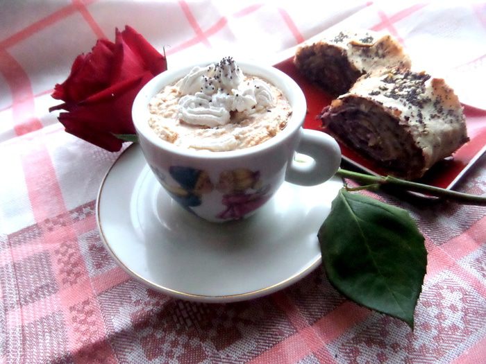 И выдавливаем на кофе сливочную змейку!