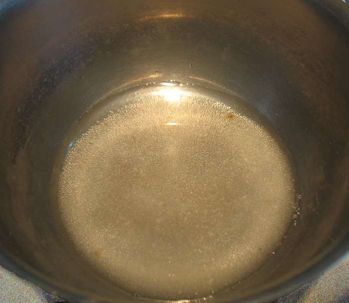 В сотейник насыпать сахар и залить его 50 мл. воды. Поставить на средний огонь.