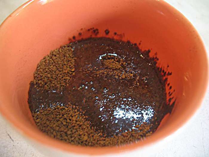Растворимый кофе залить 50 мл воды и отставить.