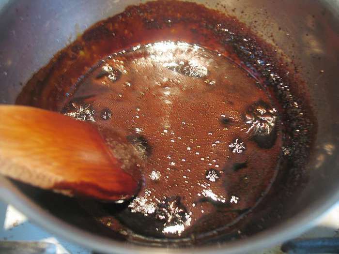 Карамель доводим до состояния ароматной, насыщенной, темной с легкой горчинкой.