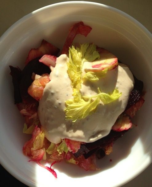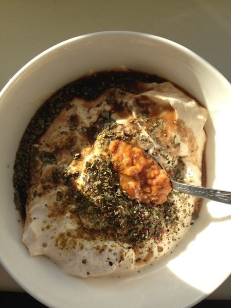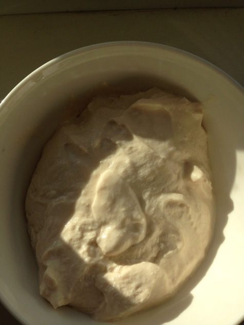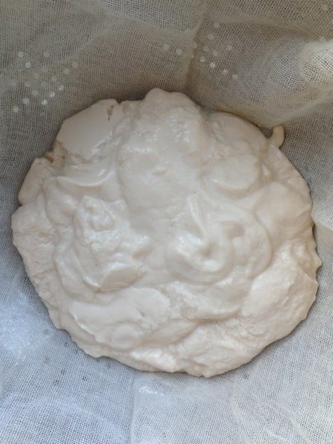 О заправке необходимо позаботиться заранее, лучше накануне вечером, но можно и за пару часов до готовки. Ряженку я беру 2,5 % жирности. Знаю, что многие ряженку морозят, а затем оттаивают, но мне проще и быстрее просто откинуть ее на марлю в дуршлаг и поставить в холодильник на сцеживание лишней жидкости.